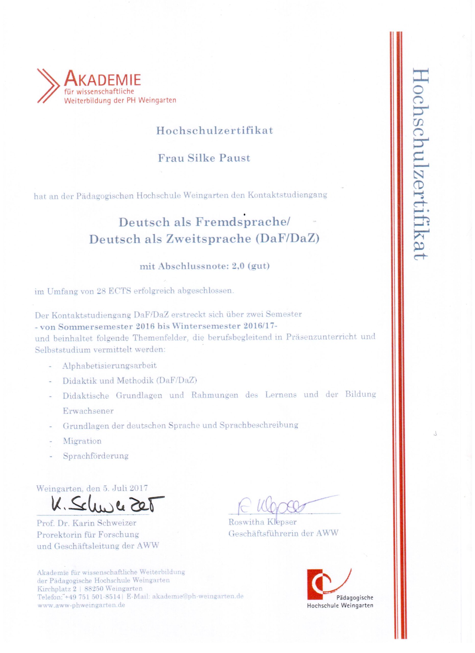 Ich helfe Ihnen, eine maximale Lernleistung in der investierten Zeit zu erreichen. Um das gewährleisten zu können, bilde ich mich laufend fort. Anhand meiner Zertifikate können Sie sich ein Bild von meinen Fähigkeiten und Qualifikationen machen.